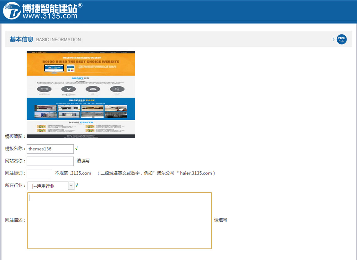 3、网站名称:可输入公司中文或英文名称,后续也可更改;