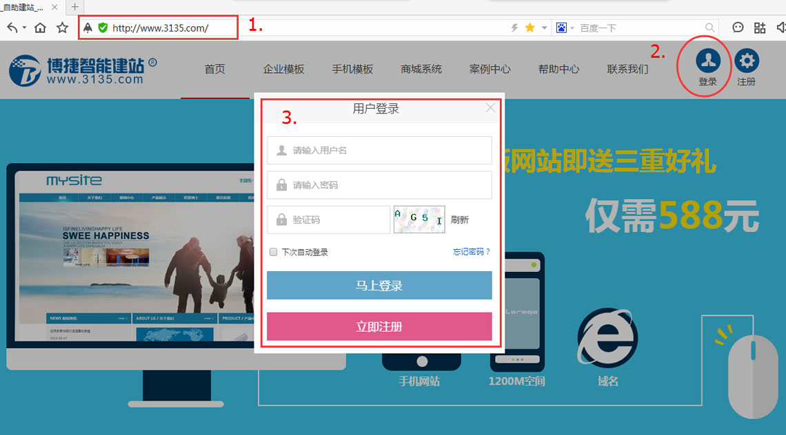 1、登录博捷智能建站http://www.3135.com/;